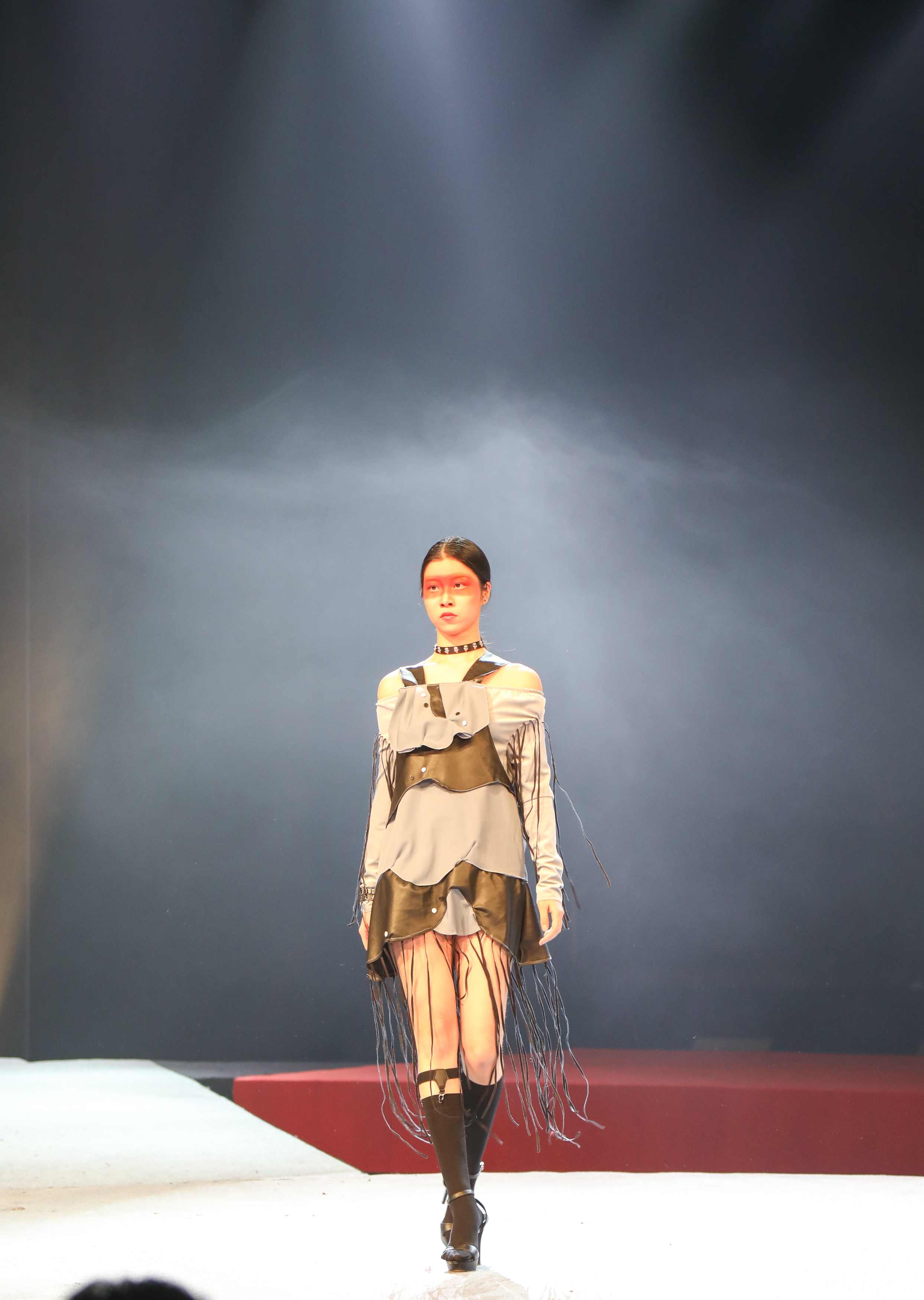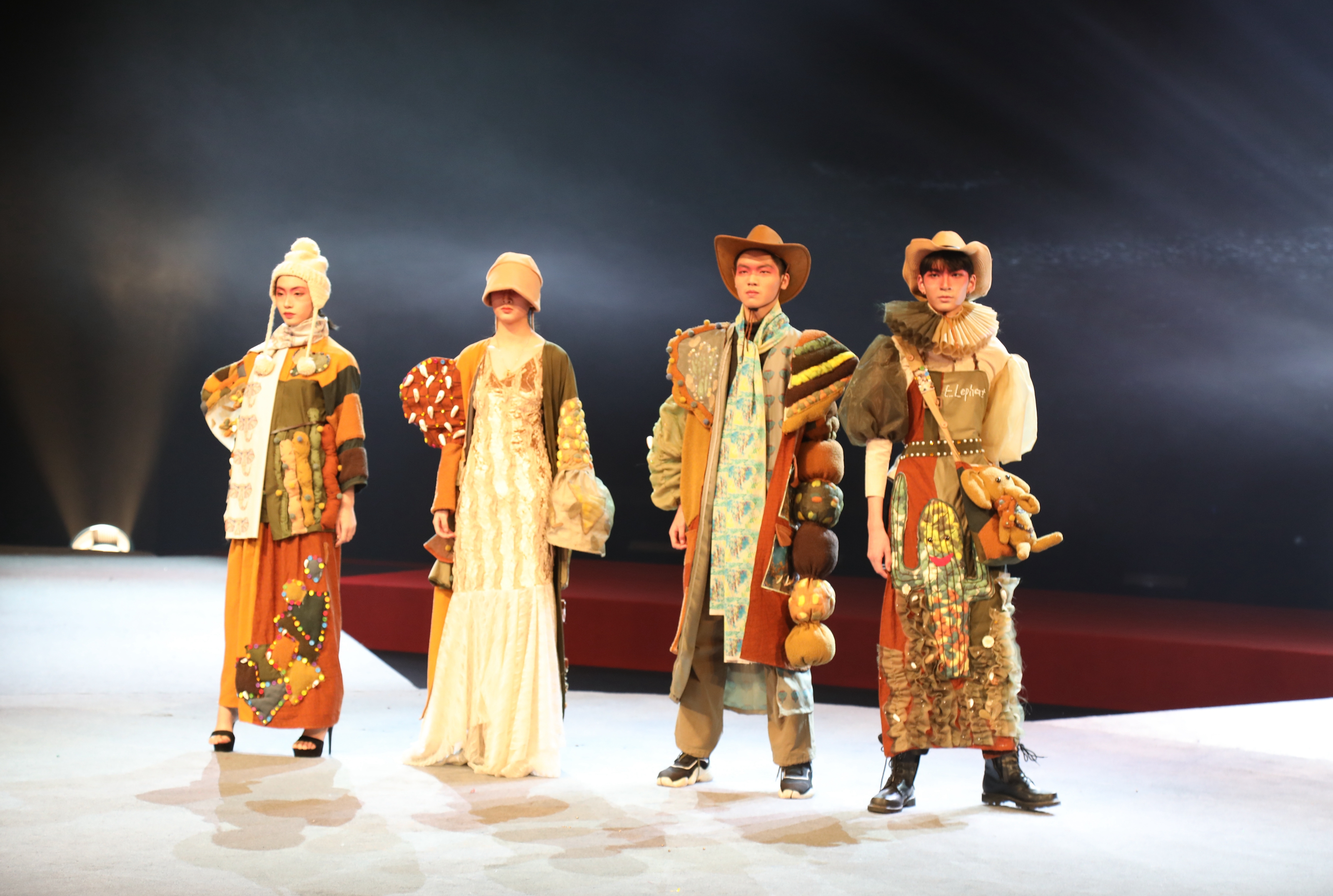 华丽的舞台被灯光照亮,当音乐响起,模特身穿着极具特色的服饰,从T台的一侧走上来,光彩夺目。从灵感的开始到一件完整的服饰作品,它们是几个月以来16级服装班同学们和老师们一针一线缝纫而成的,承载着所有设计者对服装设计艺术的追求,凝结着他们苦学多年的技艺。服装秀的一大亮点就是穿插了戏剧表演的方式展现服饰,让服饰不局限于模特走秀,而是以多元化的方式展现给观众。节选剧目有5个:有颇具传奇色彩的《逐鹿之战》,有啼笑皆非的《仲夏夜之梦》,有情缘未了的《牡丹亭》,有渴望自由的《恶女花魁》,还有改编版《倩女幽魂》。师生们结合剧目的人物角色,对服装进行创意化设计,在原有造型的基础上根据人物性格特点及服装的现代流行趋势进行设计创新。
