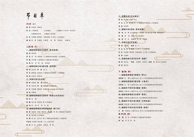 14级绍剧班、16级浙越班、17级越剧温州南通班、18级越剧南京班、18级越剧(3+4中本一体化班)、19级越剧小百花班,15、16级民乐班上百余位学生参与了本次演出。