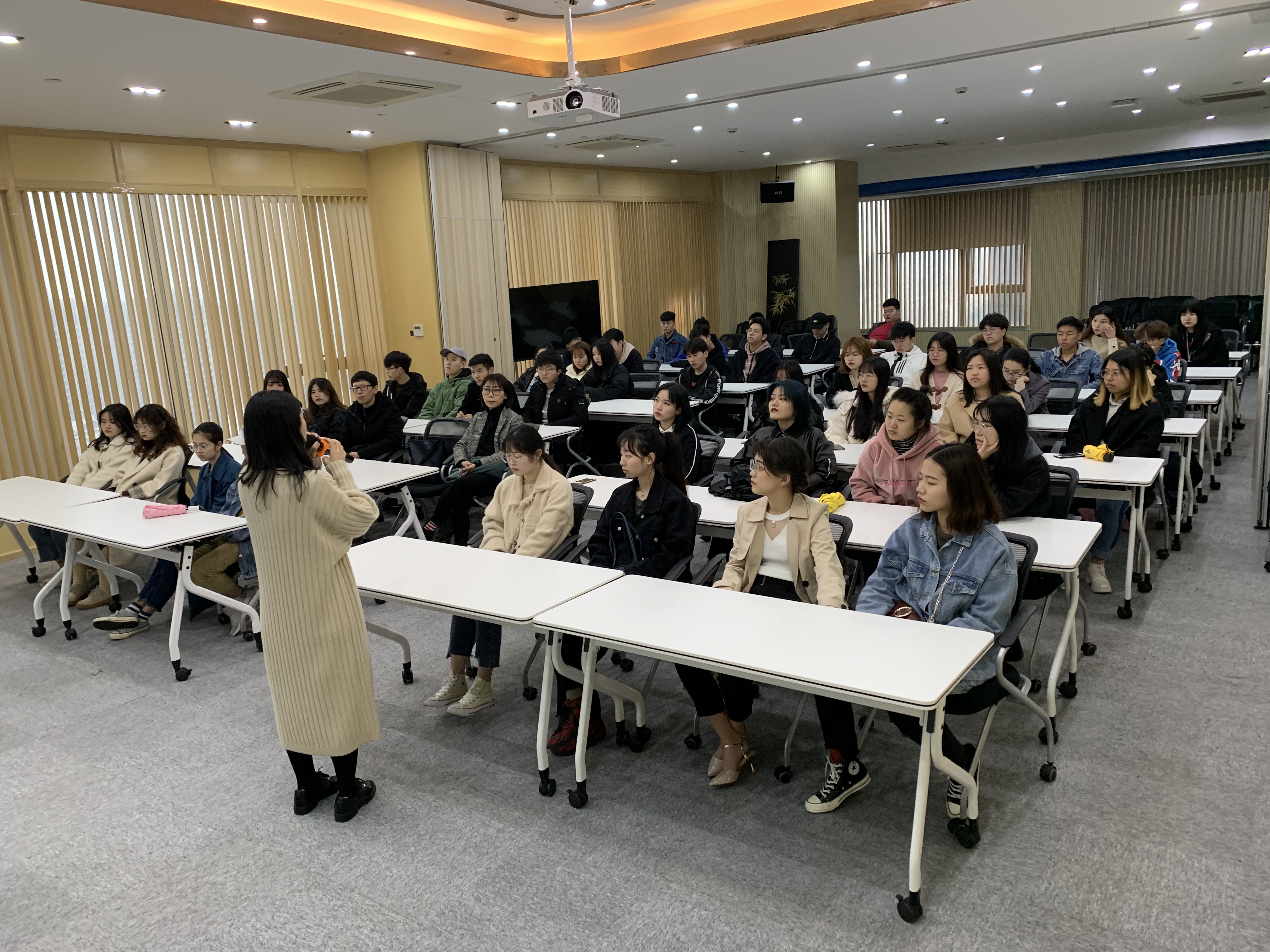 杭州群核信息技术有限公司酷家乐商学院钱老师为17环艺班授课,授课主题为《科技赋能 打造未来设计新生态》。钱老师介绍,酷家乐云平台是以分布式并行计算和多媒体数据挖掘为技术核心推出的VR智能室内设计平台。通过ExaCloud云渲染技术,云设计、BIM、VR、AR、AI等技术的研发,10秒生成效果图,5分钟生成装修方案。酷家乐用户可以通过电脑在线完成户型搜索、绘制、改造,拖拽模型进行室内设计,快速渲染预见装修效果。目前,平台拥有覆盖全国90%的户型库,吸引了超过300万室内设计师(覆盖全国40%的室内设计师)和超1000万业主用户。酷家乐已服务于小米、美克美家、林氏木业、顾家家居、博洛尼等12000家品牌企业,市场覆盖率超过70%。