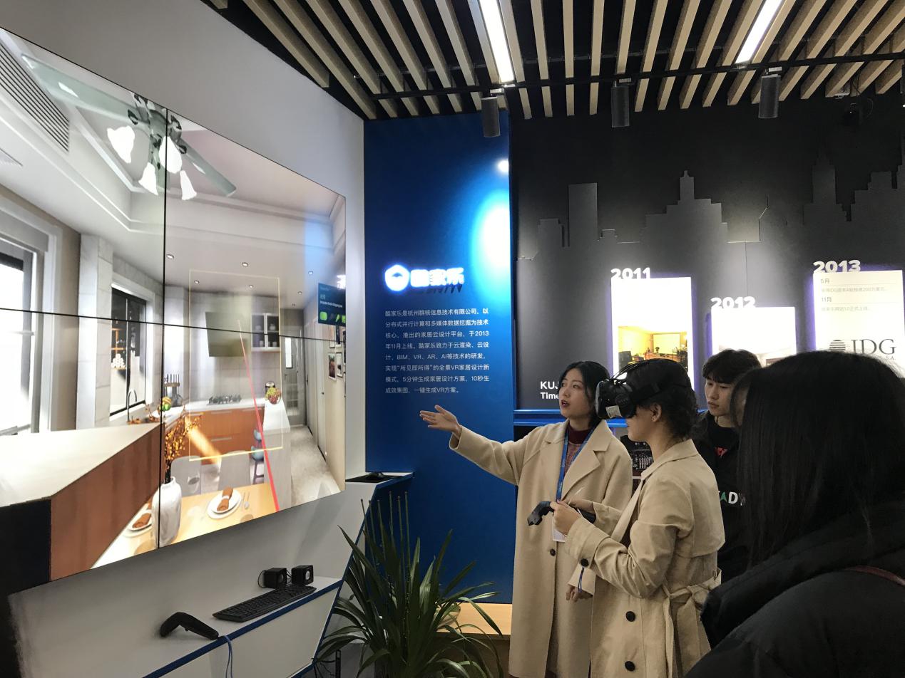 随后,酷家乐工作人员还带领在场老师同学参观了他们的工作环境,体验了酷家乐的VR系统,让在座老师同学看到了他们的平台愿景,所见即所得。