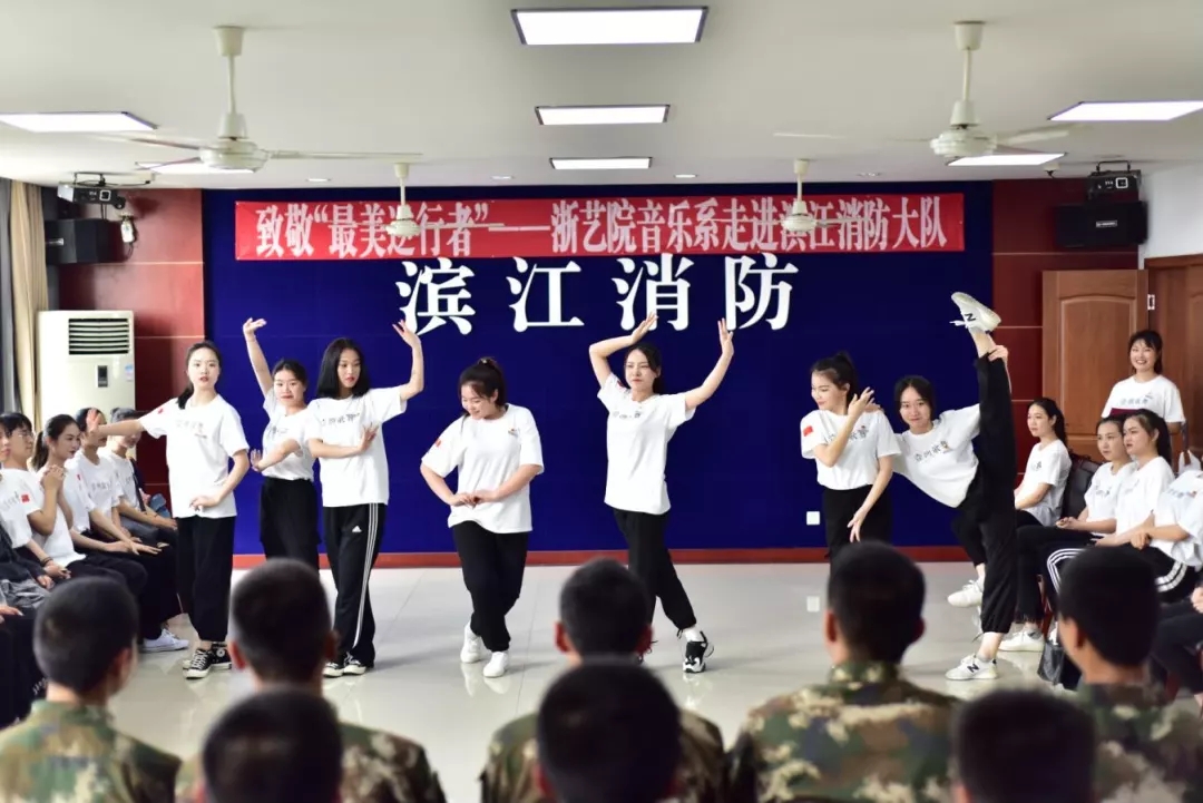 为把最优秀的演出奉献给广大消防员,同学们精选了涵盖演唱、舞蹈、朗诵和互动游戏等形式的10个节目,为消防员们带来了一场艺术享受和快乐。