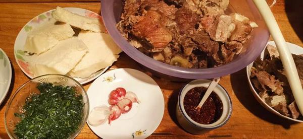 我是影视技术系19多媒体班的祁惠珠,来自甘肃定西,我们这边的年夜饭有一道主食,是从老祖宗那一代一直传到现在的,那就是啃猪骨头,每家每户到年三十这天下午一点左右就开始煮提前选好的猪骨头,大概煮三四个小时,之后就放在锅里焖。大概到五点左右就开始叫齐家人们一起就着馒头、葱、大蒜吃,吃完之后再喝酸汤。这是我们这个村里最主要的一道年夜饭,无论家庭情况好不好,这道菜都必须吃,且都必须是主食,这也算是我们这边的一个传统年夜饭。