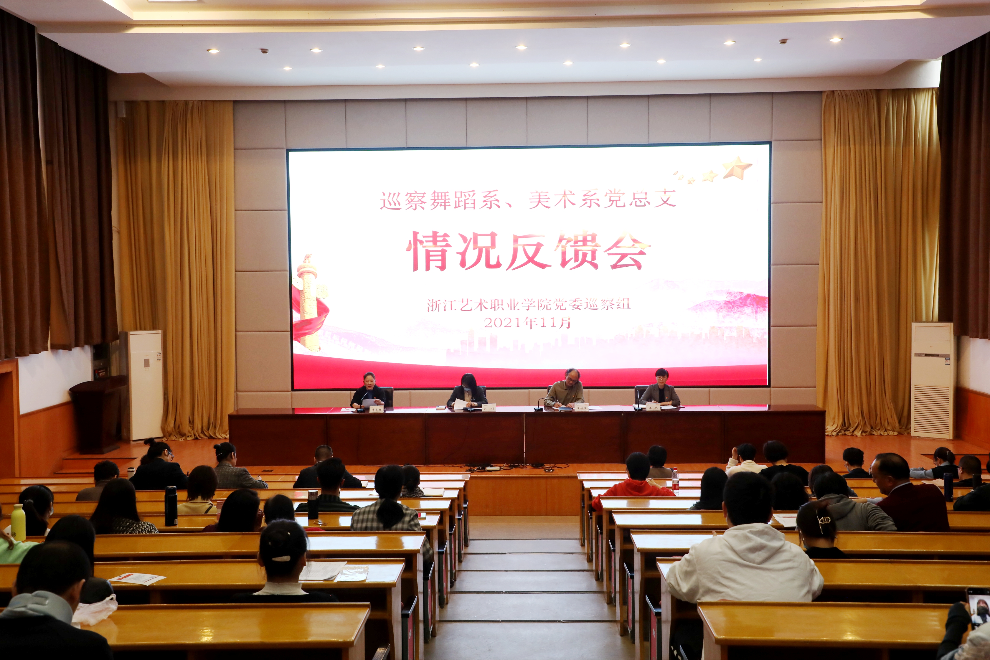 11月4日,学校党委巡察组召开巡察舞蹈系党总支和美术系党总支情况反馈会,校党委巡察工作组副组长、校党委委员、组织部部长刘杨出席会议并讲话。巡察工作组成员、舞蹈系、美术系全体教职工参加会议。