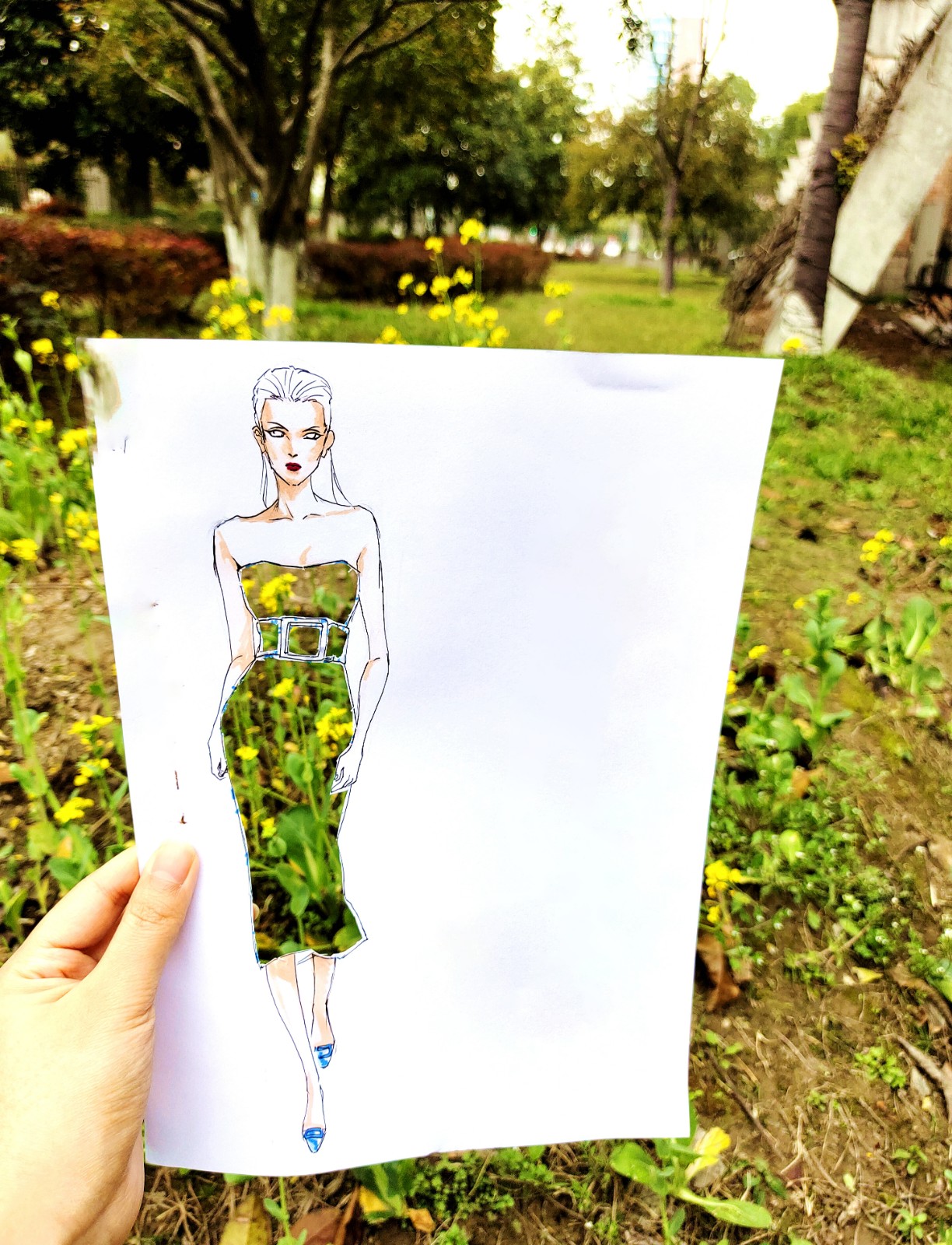 当服装设计图遇上花海