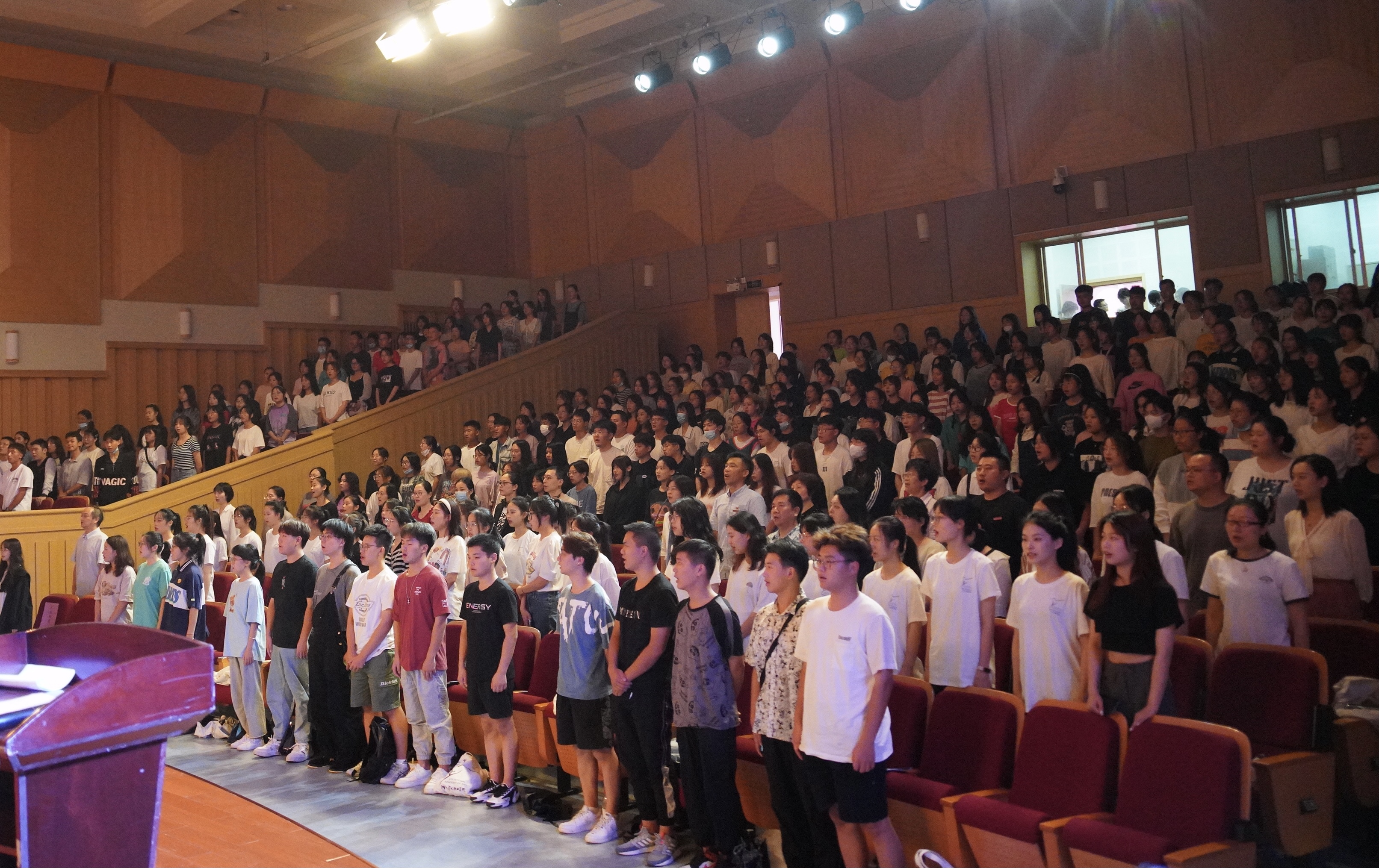 随后,迎新表演在热情的开场舞中拉开帷幕。璀璨灯光下,舞蹈《not only》让现场热情持续高升。歌曲独唱《祖国之恋》富有感染力的歌声迎来同学们阵阵掌声。朗诵《妈妈,稻子熟了》颂出了袁隆平院士和母亲深沉的爱,令人动容。最后,典礼在合唱《在灿烂的阳光下》中落下帷幕,掌声经久不息。