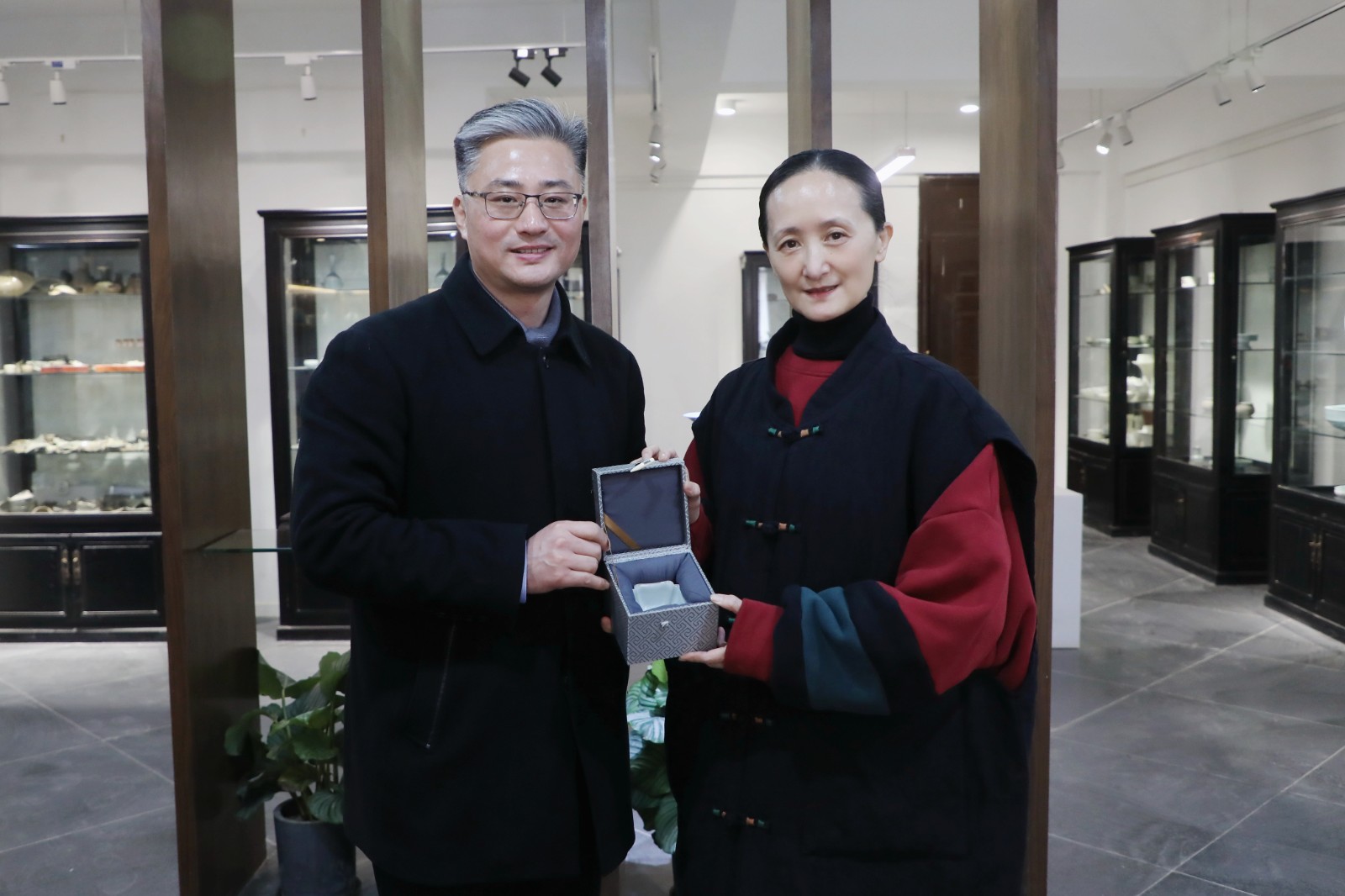 冯英一行还参观了“匠心守艺”手工艺教学成果展、浙江实验艺术剧场、陶艺室、文物修复实训室等。
