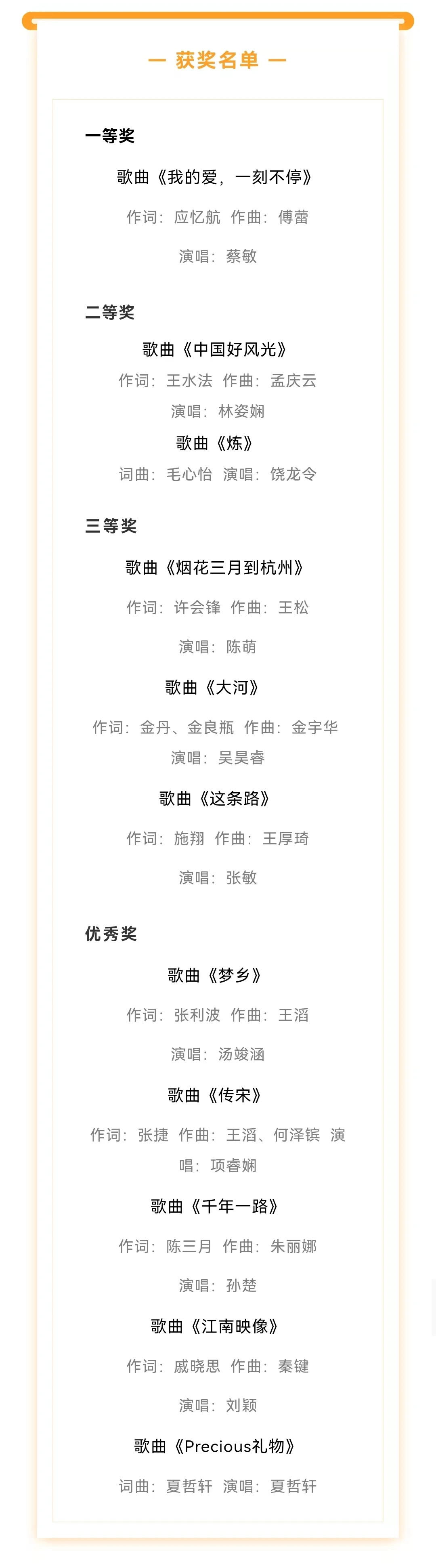 该活动于今年4月启动,收到全国各地510多首作品,通过初评、复评和决赛,最终11首佳作获奖。