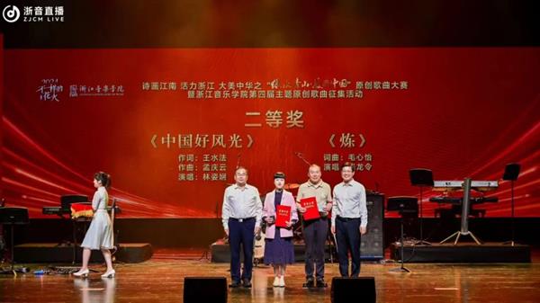我校音乐学院青年教师毛心怡作词作曲的原创歌曲《炼》荣获二等奖。该作品在歌颂人与自然和谐共生的“绿水青山·美丽中国”的同时,通过歌咏宝剑来寄托保家卫国志士的理想和抱负,将“十年磨一剑”的“胆剑精神”奋斗气概通过炼剑加以诠释,既抒发对保家卫国志士的褒扬和崇高敬意,又隐喻了铸剑过程的砥砺艰辛,也对有爱国之心报国之情强国之志之士的精神加以鼓舞,立意高远、寓意深刻,具有鲜明的时代性和浙江特色。