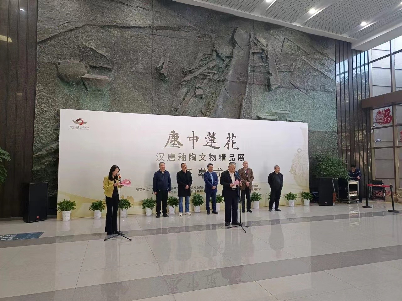 此次展览由跨湖桥遗址博物馆与郑州大象陶瓷博物馆联合主办,开幕仪式现场,六位文物行业专家亲临现场。