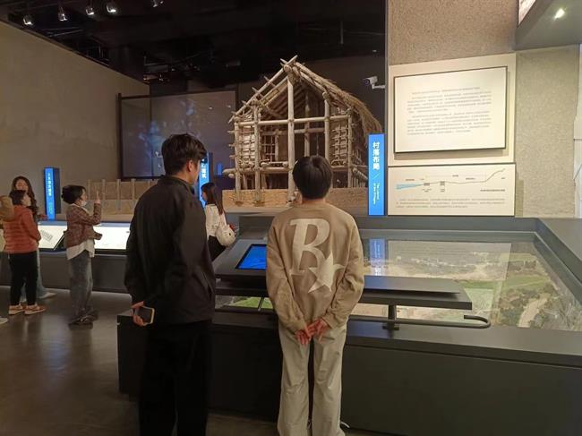 开幕仪式前,师生们前往二楼展厅,参观了主题陈列“勇立潮头”,展览主要展示了萧山湘湖跨湖桥遗址的部分挖掘文物。主题展分为湖底的遗址、生活的画卷、创造的艺术、信仰的力量、文明的交融五个单元。这座坐落在小岛之上,追溯杭州八千年的博物馆,让同学们感到震撼。