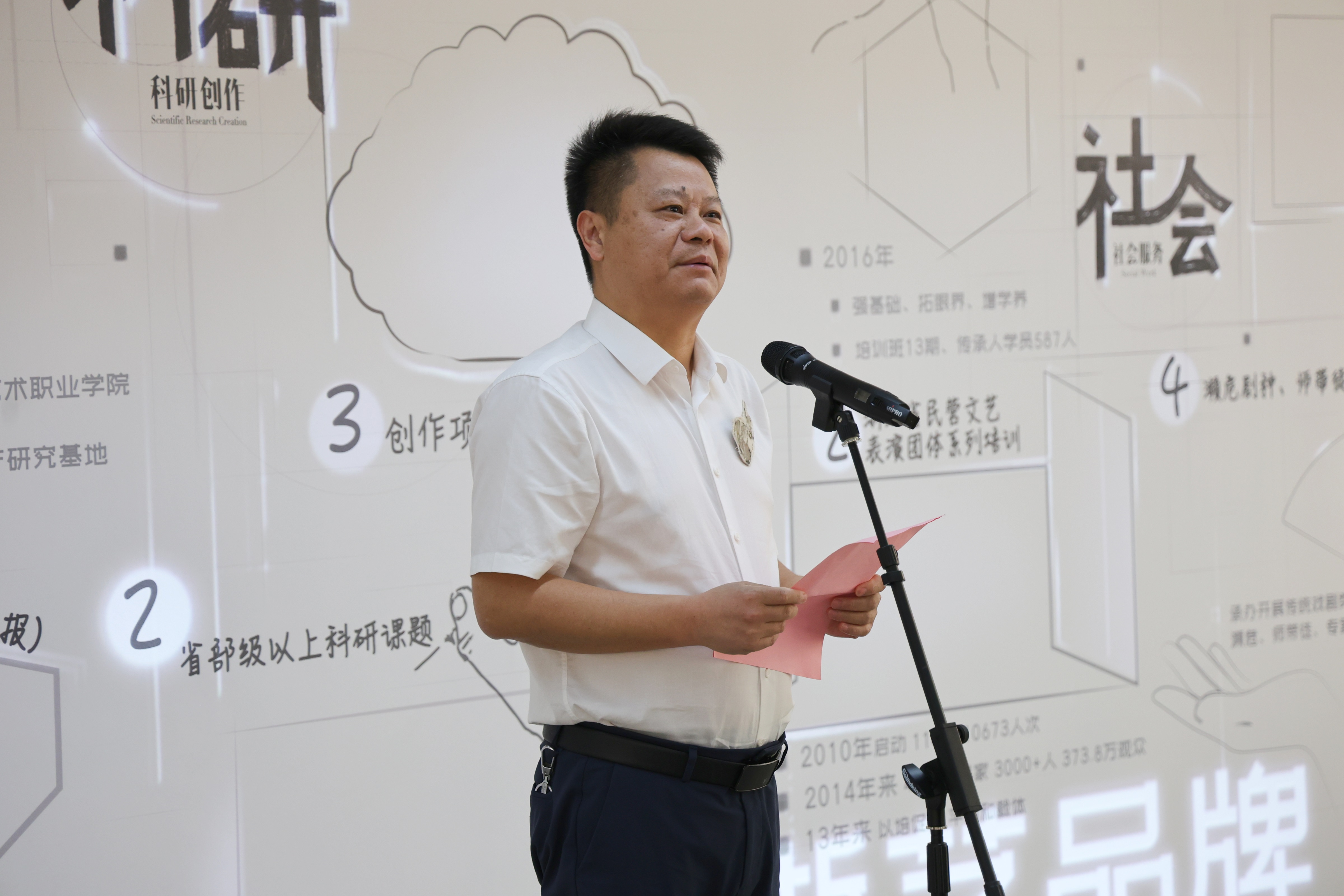 薛亮致辞。他指出,浙江非遗传习院、非遗创意产业学院自成立以来,沿着五年建设发展规划稳步前进,在非遗领域深耕传承和创新,致力于非遗保护传承、教学科研和产教融合,希望通过师生的共同努力,传承好宝贵的非遗知识,让灿烂的传统文化在新时代绽放出新光彩。他对本次展览的举办表示祝贺,并期待更多优秀的非物质文化遗产展览在浙艺展出,向全社会传播和展示具有悠久历史和时代魅力的优秀传统文化。