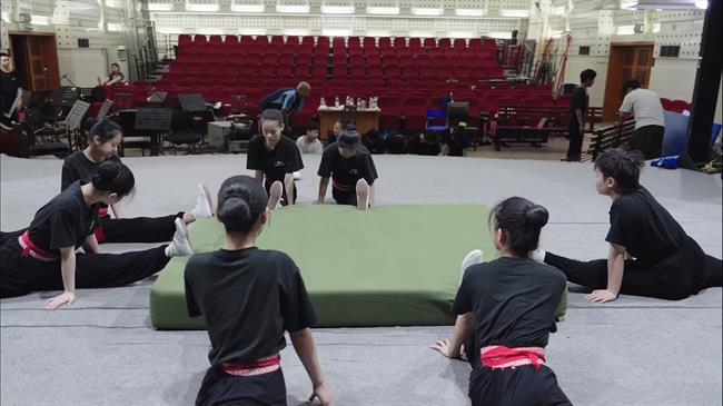 结业汇报演出以宁海平调吹打乐《十番锣鼓》开场,奏响“平调新韵”。培训班学员们的《金莲斩蛟》《吕布与貂蝉·小宴》《徐策跑城》《珍珠塔·跌雪》《阴阳河·挑水》《赵奢收赋》六个平调剧目轮番上演,扣人心弦。宁海平调订单班的全体传承人以暑期集训成果曲牌联唱《雏燕试啼》传递平调艺术薪火相传梨园新声,为一个月的培训画上圆满句号。